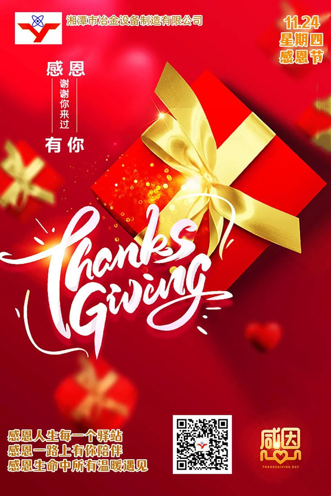 感恩節(jié)里,湘潭冶金設備衷心感謝那些一直堅守在身邊的人——員工、客戶、朋友、供應商、合作伙伴,以及所有支持與信賴我們的人。正是因為這所有人的不離不棄、攜手同行,才讓我們心中常駐溫暖,縱使獨行也不孤單,成長為國內(nèi)冶金礦山設備專業(yè)定制的佼佼者。